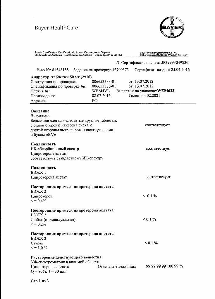 Срок годности препарата Андрокур®
