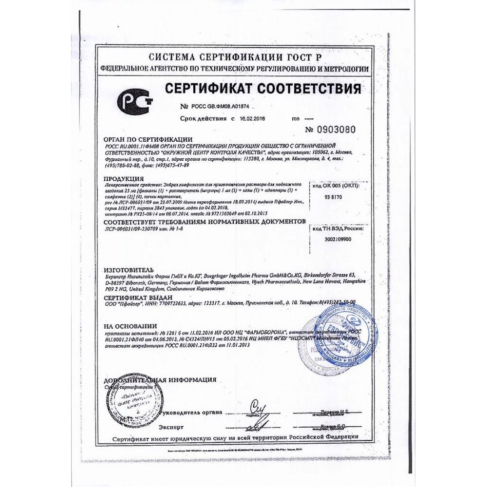 Вспомогательные вещества: маннитол, сахароза, трометамол, трометамола гидрохлорид (до pH).