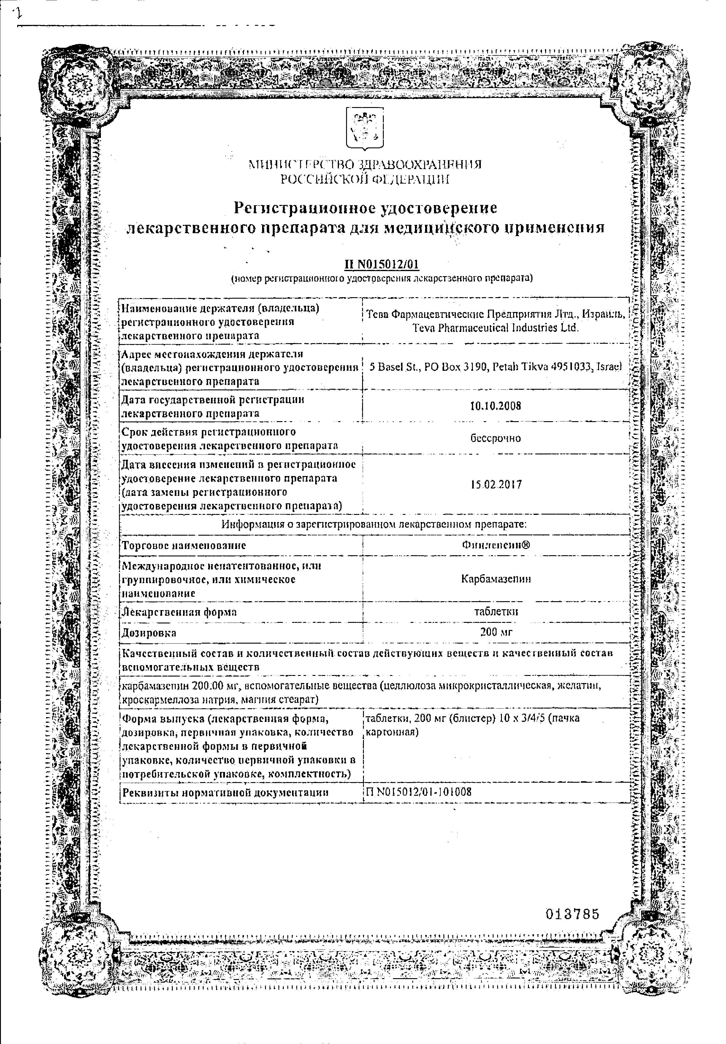 Инструкция по применению Финлепсин ретард 200мг таб. №50