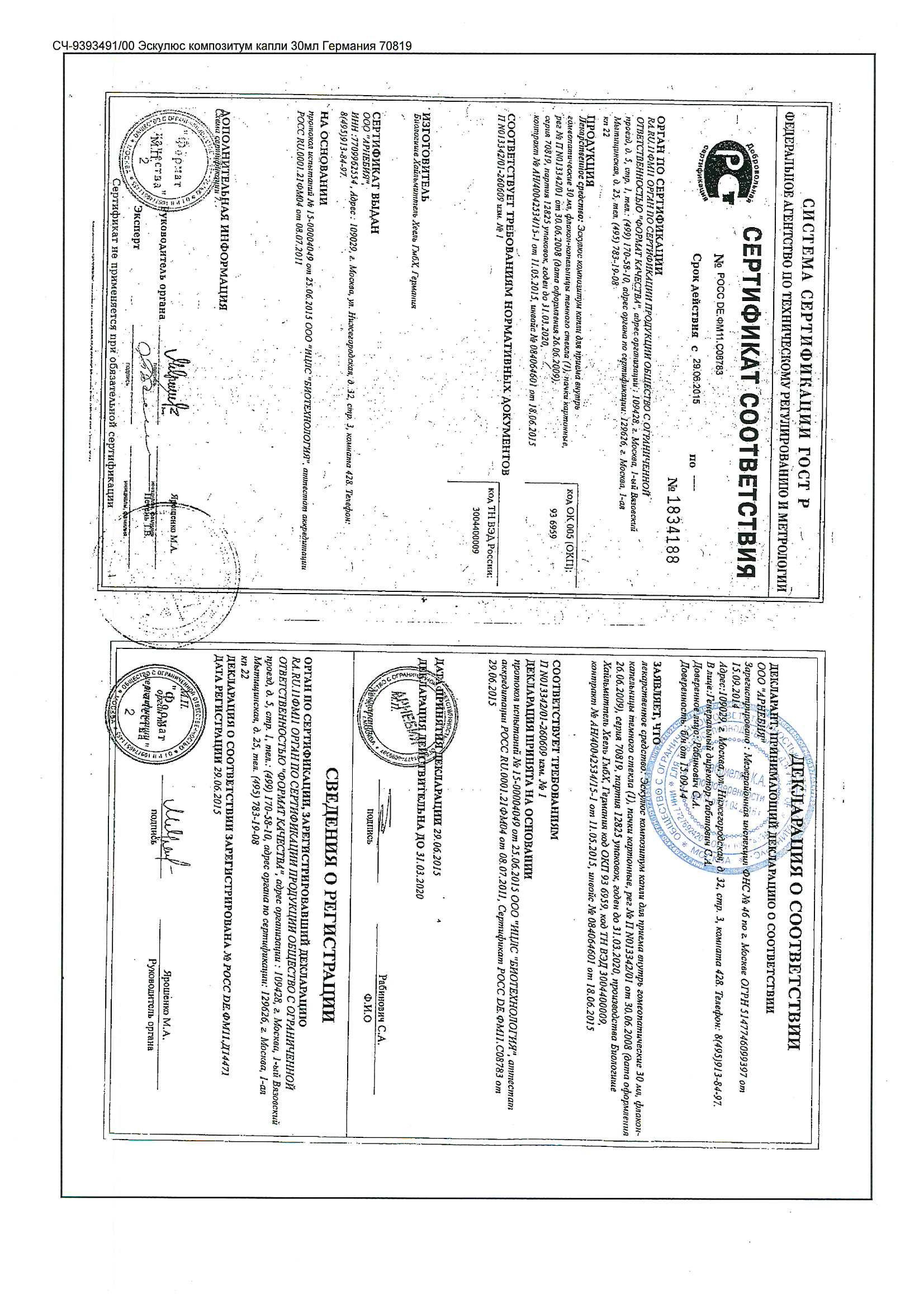 В период беременности и кормления грудью препарат Эскулюс композитум может применяться только после предварительной консультации с врачом.