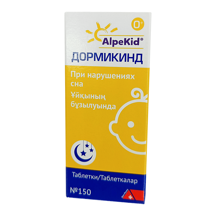 Дети в возрасте младше 6 лет: по 1 таблетке 4 раза в сутки. Дормикинд принимать за полчаса до или через полчаса после еды (должны раствориться во рту). Курс терапии 3–4 нед. При лечении детей грудного возраста таблетки можно растворять в небольшом количестве воды. Детям в возрасте <3 лет для удобства применения рекомендуется таблетку размельчить или растворить в небольшом количестве воды.