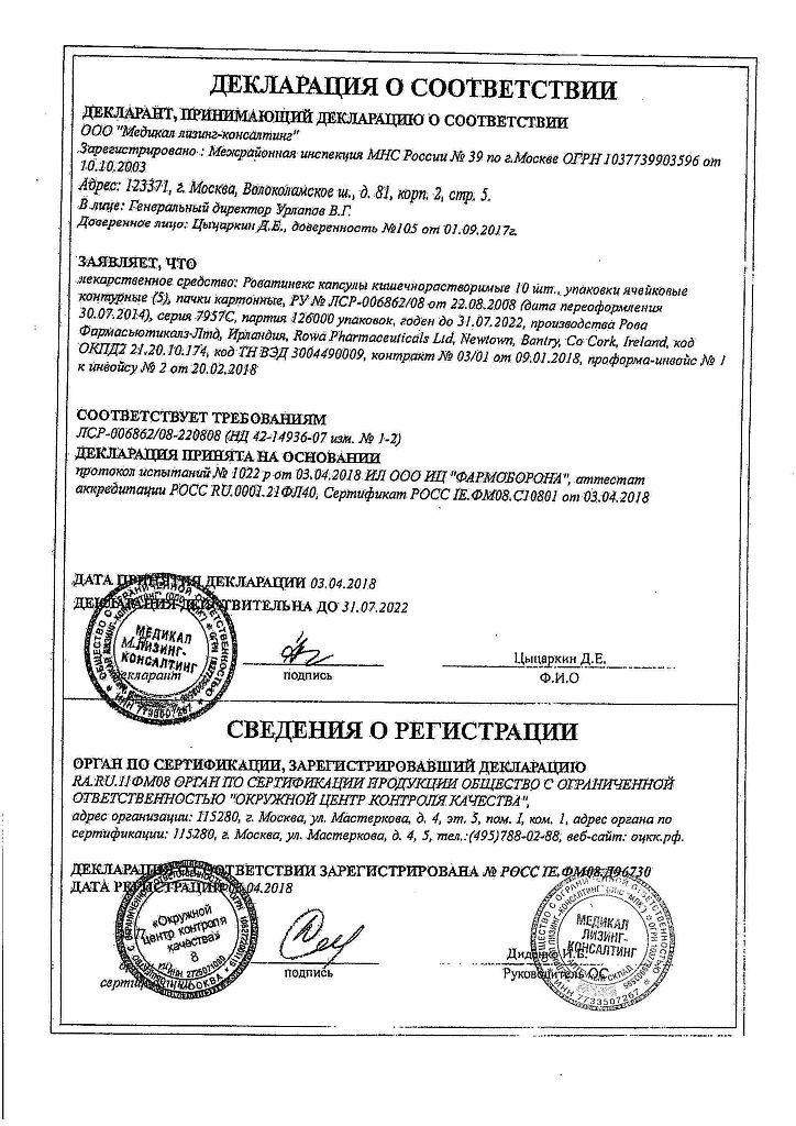 Срок годности препарата Роватинекс
