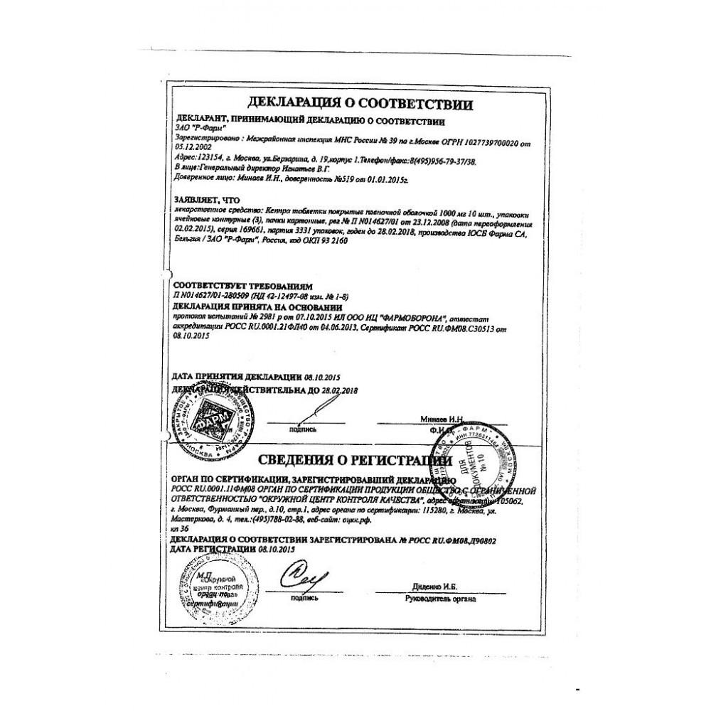 Абсолютная пероральная биодоступность близка к 100%. Сmax в плазме крови достигается через 1,3 ч после приема препарата. Равновесное состояние достигается через 2 дня применения препарата 2 раза в сутки. Сmax обычно составляют 31 и 43 мкг/мл после разовой дозы 1000 мг и повторной дозы 1000 мг 2 раза в сутки соответственно. Степень всасывания не зависит от дозы и не изменяется под влиянием пищи.