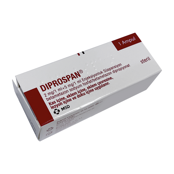 Дипроспан® содержит два активных вещества - соединения бетаметазона, одно из которых, бетаметазона натрия фосфат, является быстрорастворимой фракцией и поэтому быстро проникает в системный кровоток. Следует учитывать возможное системное действие препарата.