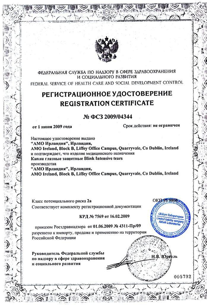 Глазные капли Блинк Интенсив могут использоваться вместе с контактными линзами. Не применяются, при повреждении защитного слоя на колпачке.
