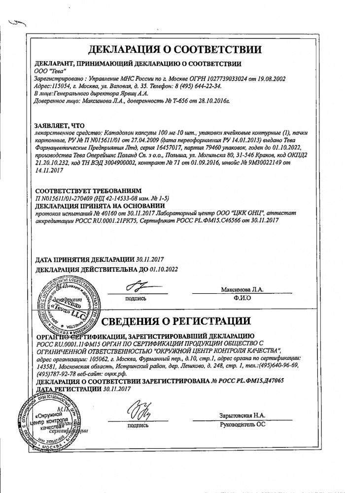 Недостаточно данных о применении флупиртина при беременности. В экспериментальных исследованиях на животных флупиртин показал репродуктивную токсичность, но не тератогенность. Потенциальный риск для человека неизвестен. Препарат Катадолон® не следует применять при беременности, за исключением тех случаев, когда польза для матери превышает потенциальный риск для плода.