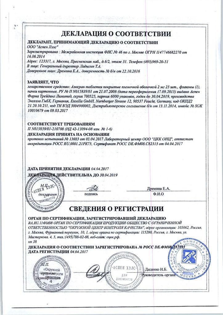 Срок годности Алкеран