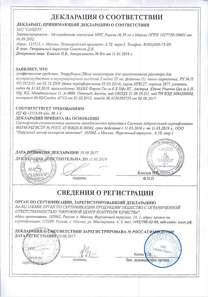 Срок годности препарата Эпирубицин Эбеве