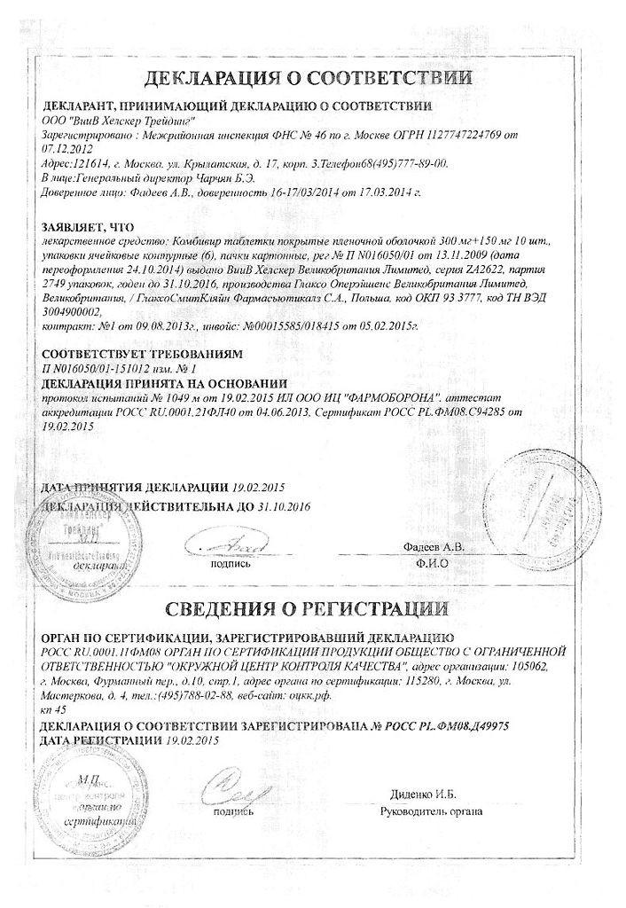 Комбивир 150мг/300мг таблетки №60