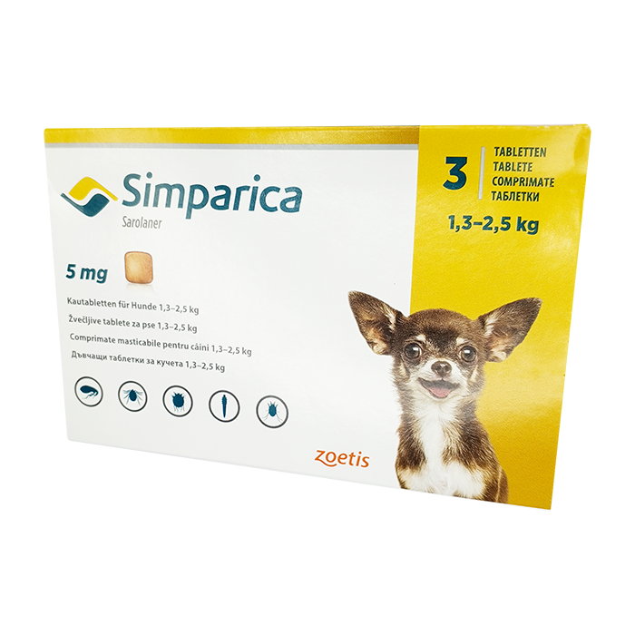 Симпарика таблетки для пер. пр. для собак 5мг 1,3-2,5кг ГЕРМАНИЯ! N3