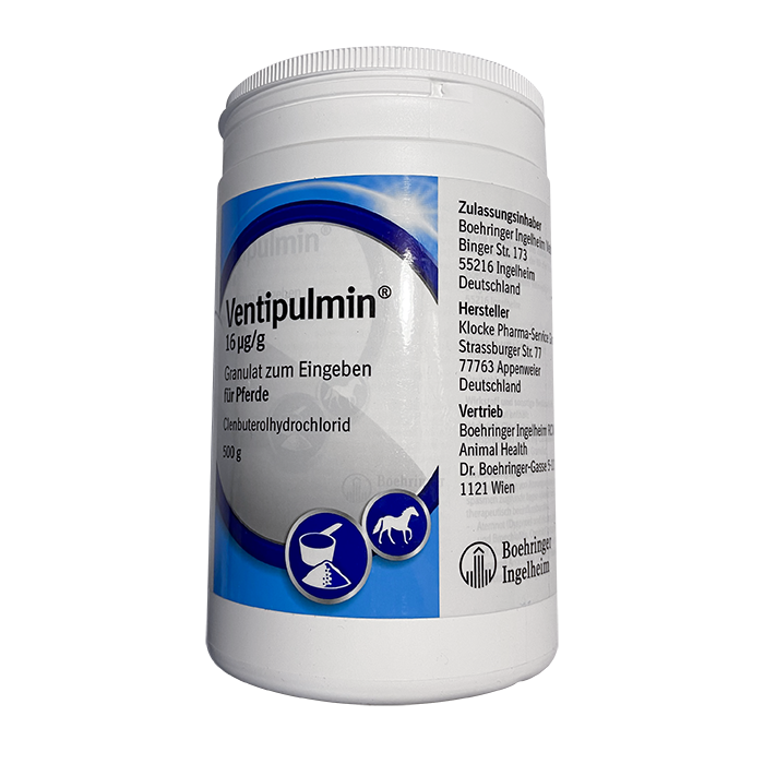 Вентипульмин предназначен для терапии респираторных заболеваний у лошадей, при которых способствующим фактором является нарушение проходимости дыхательных путей по причине бронхоспазма и/или скопление слизи, а также желательно улучшение мукоцилиарного клиренса.